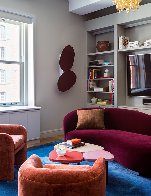 В тази стара къща в грузински стил комфортът е от ключово и основно значение. Декоративните възглавници и одеала омекотяват откритите греди и каменни стени. Малките на пръв поглед детайли, изискващи нищо повече от просто въображение, внасят топлината и хармонията, от които се нуждаем. За да засили още повече комфорта в своята изкусна спалня в Ню Йорк, световно известният дизайнер Колет вас ден Тиларт украсява табуретка с пухкава козина. Малко и семпло, но толкова подходящо и красиво. Тук акцентът пада върху табуретката, покрита с пухена кожа, което носи в себе си двоен заряд. На първо място, осигурява визуален ефект и интерес, а на второ – прекрасно място за релаксация в този новопостроен дом.Кафяво-зеленият диван от велур добавя фин завършек на тази трапезария. Наистина семпло допълнение, но пък носещо в себе си така нужното спокойствие и красота.Тези два кожени дивана правят този хол да се почувства като в топла и задушевна прегръдка. Запалената камина с дърва и възглавничките в комбинация с одеала засилват уюта в този дом.„Обичам да използвам мащабни и смело оцветени мебели в по-малките пространства, които носят със себе си драматизъм и въздействат по този начин“, казва директорът на музей Келвин Бран за своята всекидневна. Мебелите с тъфтинг, какъвто е в случая диванът в черен цвят, са съществували от векове и продължават да бъдат популярни и днес. Дали е заради факта, че изглеждат елегантно или просто защото са перфектната комбинация от добър външен вид и комфорт? Можем да отговорим само ако сме изпробвали мебели с тъфтинг.Дизайнерът Джилиан Джилис работи усилено, за да намери мебели за този дом, които да са подходящи за котки. Тези кожени въртящи се столове са едновременно удобни и могат да издържат във времето.Кой не обича извити, при това в ярки цветови комбинации, дивани? В това разкошно пространство смелите кадифени кресла и диванът в наситен цвят се компенсират от контрастен кобалтов килим.