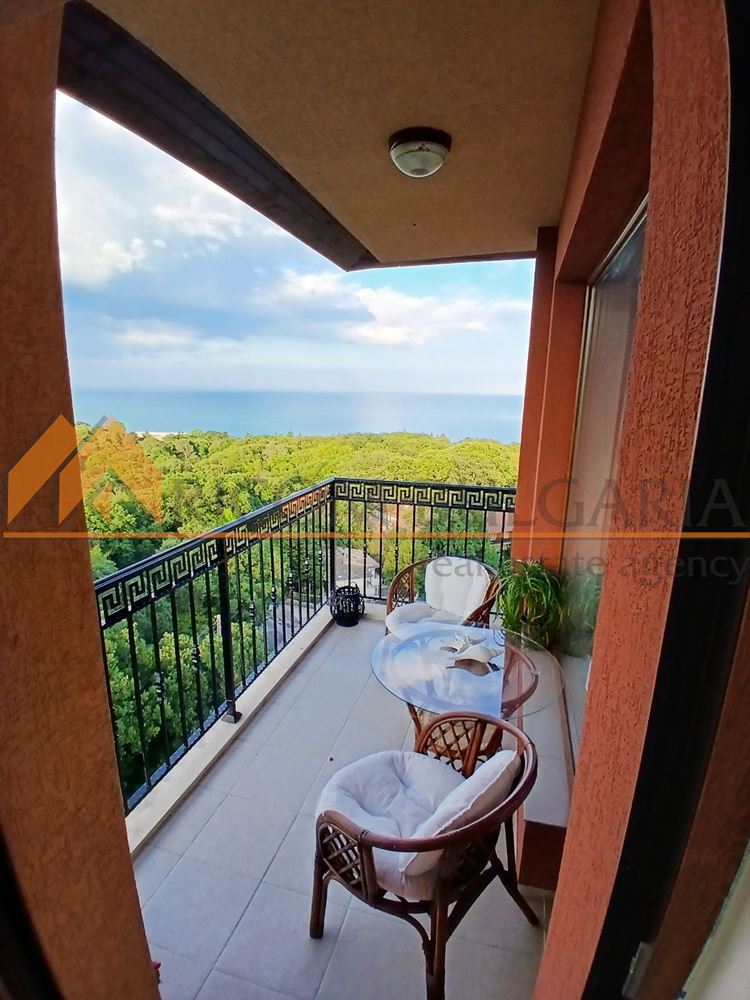 Апартаментът е с морска панорама, напълно обзаведен и оборудван! Нескриваема морска панорама! Сградата е с АКТ 16 с контролиран достъп, басейн и охрана.